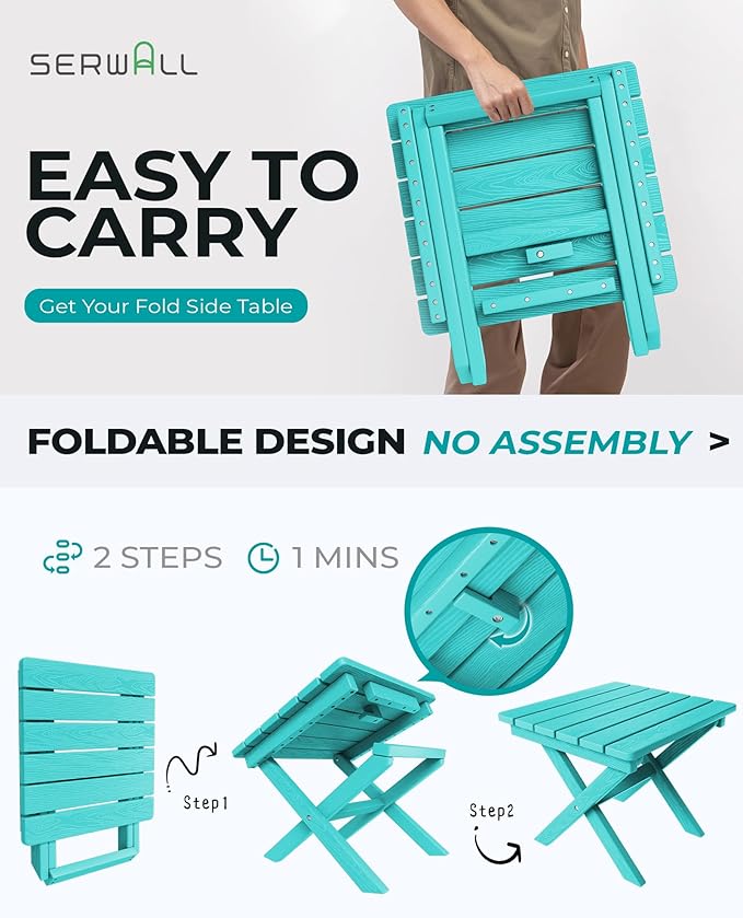 - [Ready-to-Use Convenience] Unbox your SERWALL Adirondack Side Table and enjoy immediate functionality. This folding end table is designed for hassle-free setup, perfect for those seeking a no-assembly-required experience.
