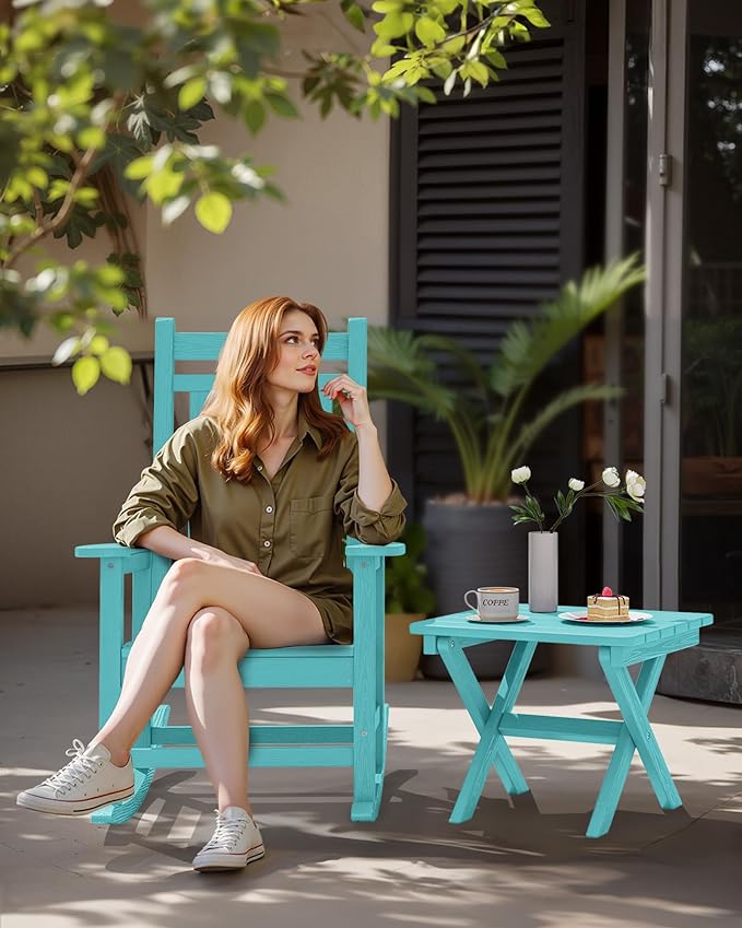 SERWALL Adirondack Side Table, No Assembly Outdoor End Table, HDPE Small Folding Table for Backyard Pool Porch, Aruba