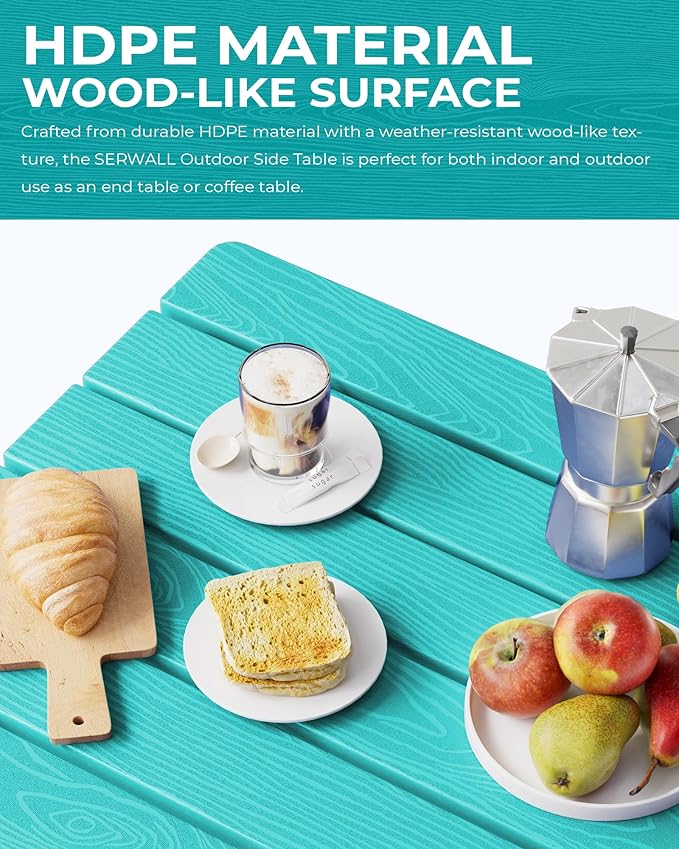 - [Durable HDPE Material] Expertly constructed from high-quality HDPE, this SERWALL end table is designed to withstand all weather conditions, ensuring long-term use in both indoor and outdoor environments.