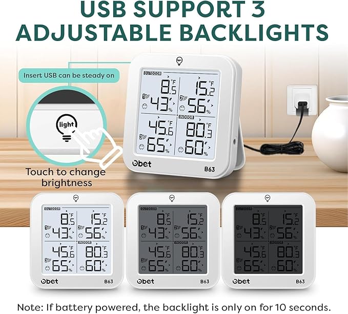 - What You Get: 1 thermometer, 3 sensors, 1 USB cable, instruction. For better experience, OBET provides 30 days of return and exchange on Amazon, also one-year warranty service.
