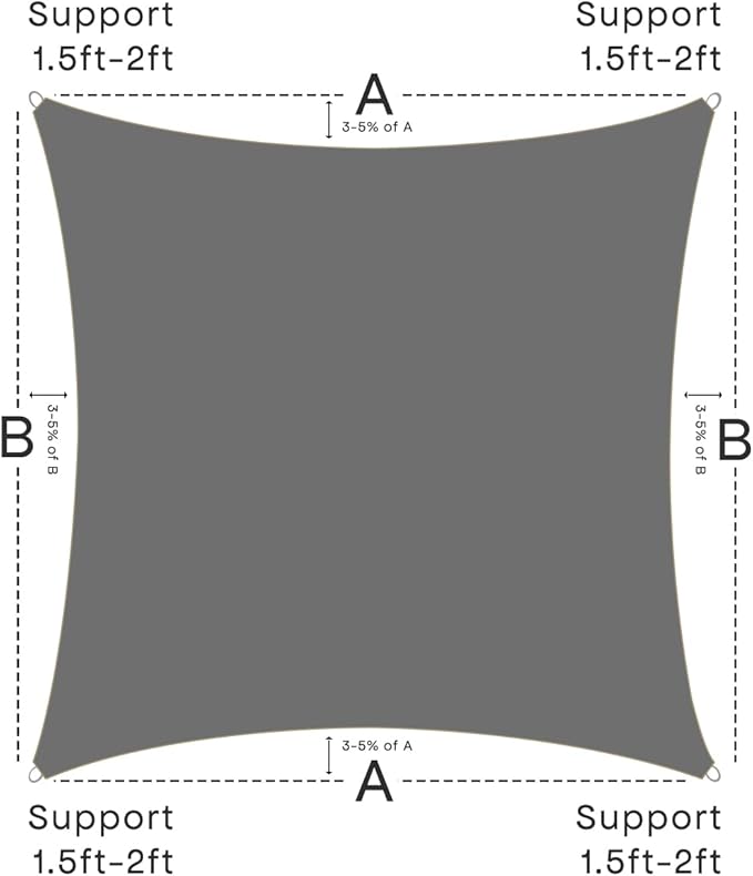 - ?�Easy Installation?? Our sun shade sail package comes with a complete set of installation accessories. It is recommended to keep the installation angle between 25 and 40 degrees for better wind resistance and durability. Also lets rain drain to prevent pooling,not waterproof.