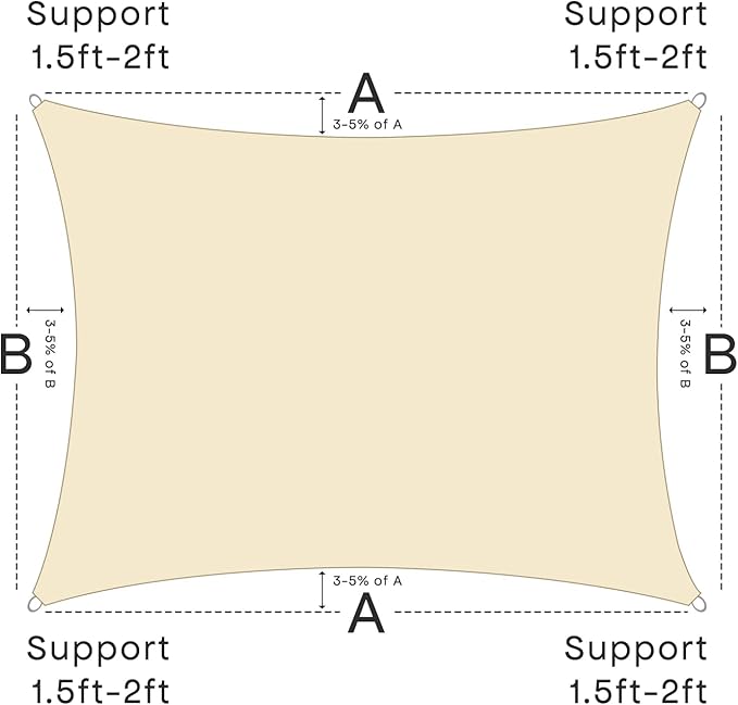- ?�Easy Installation?? Our sun shade sail package comes with a complete set of installation accessories. It is recommended to keep the installation angle between 25 and 40 degrees for better wind resistance and durability. Also lets rain drain to prevent pooling,not waterproof.