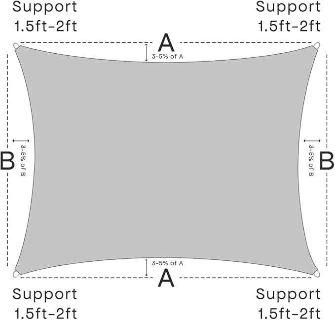 - ?�Easy Installation?? Our sun shade sail package comes with a complete set of installation accessories. It is recommended to keep the installation angle between 25 and 40 degrees for better wind resistance and durability. Also lets rain drain to prevent pooling,not waterproof.