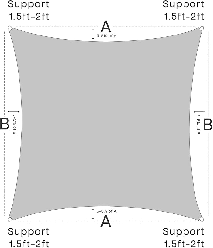 - ?�Easy Installation?? Our sun shade sail package comes with a complete set of installation accessories. It is recommended to keep the installation angle between 25 and 40 degrees for better wind resistance and durability. Also lets rain drain to prevent pooling,not waterproof.