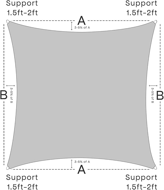 - ?�Easy Installation?? Our sun shade sail package comes with a complete set of installation accessories. It is recommended to keep the installation angle between 25 and 40 degrees for better wind resistance and durability. Also lets rain drain to prevent pooling,not waterproof.
