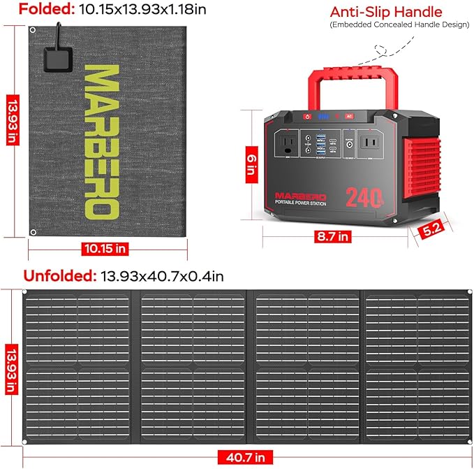 MARBERO Solar Generator 240Wh 300W Portable Power Station with Solar Panel 60W Included Backup Lithium Battery with AC Outlets for Camping Home Outdoor Emergency Hiking Travel