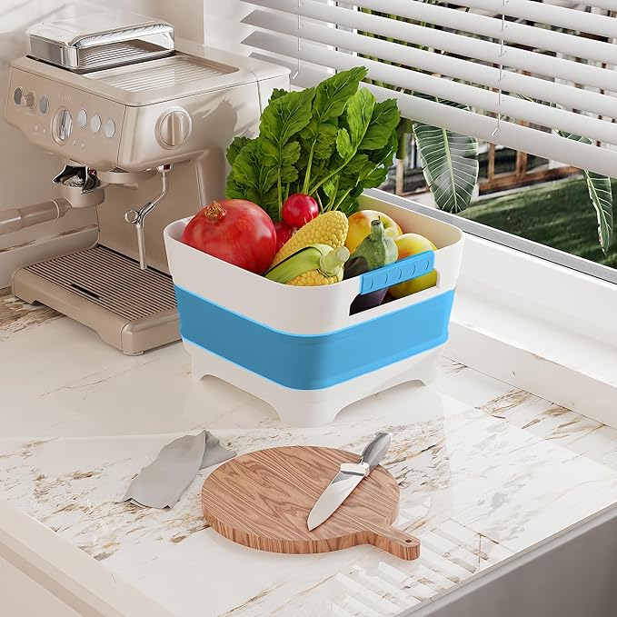 - 【Collapsible & Ultra-Durable】The dish basin maintains its space-saving foldable design, allowing you to adjust its size as needed and collapse it easily for storage, saving precious space. Dimensions remain the same—expanded size: 12.4 x 12 x 7.9(h) inches, collapsed: 2.8 inches—with an updated, sturdier build using superior plastics and silicone.