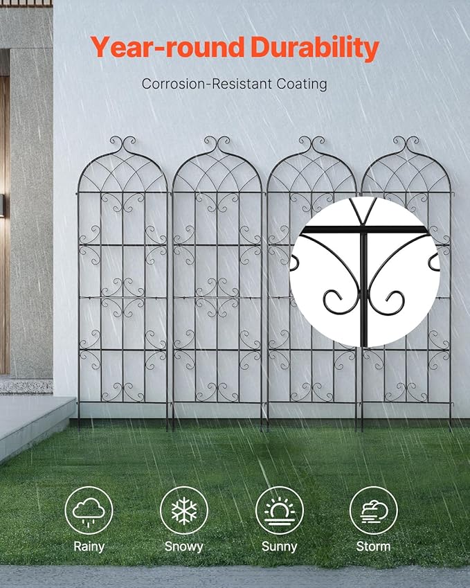 - All-Weather Durability: Featuring a robust powder-coated finish, this garden trellis for climbing plants is built to resist rust and corrosion, ensuring it withstands the elements while looking great for years to come.