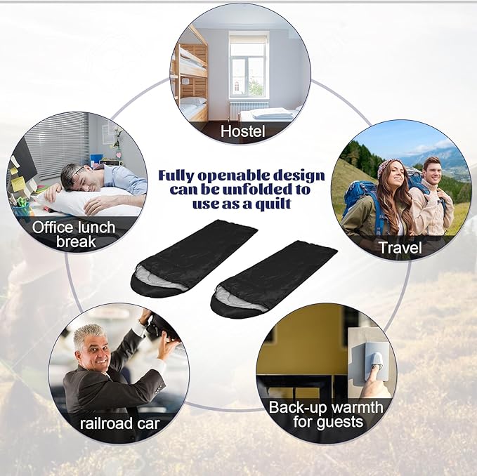 - Weatherproof Protection: these outdoor sleeping bags are made of durable polyester and are suitable for spring, summer, fall and winter; They provide reliable warmth and comfort, and the weatherproof design ensures that you stay warm even in extreme weather conditions and effectively protects against moisture, ensuring a restful night's sleep no matter what the climate