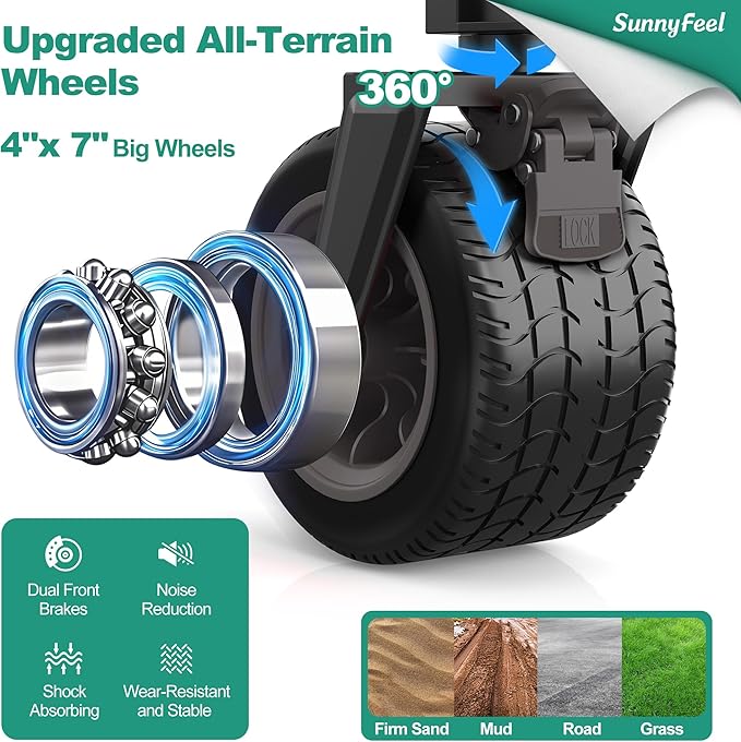 - Navigate through sandy beaches, rocky paths, or your own backyard with the cart's large, foldable beach wheels, designed specially to provide stability and ease over various terrains. Whether it's transporting gardening supplies or carrying picnic essentials, your items will rest secure and undisturbed during transit.