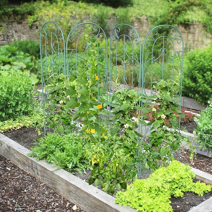 4 Pack Metal Garden Trellis for Climbing Plants,Green Metal Garden Trellis for Vines Plant Rose Vegetable Support,Large Decorative Outdoor Trellis
