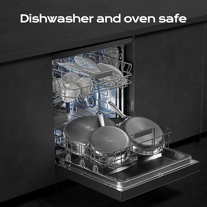 - 【Effortless Cleaning】: The KOBACH stainless steel frying pan features a dual-textured nonstick surface for easy cleanup and improved stovetop stability for safer cooking.