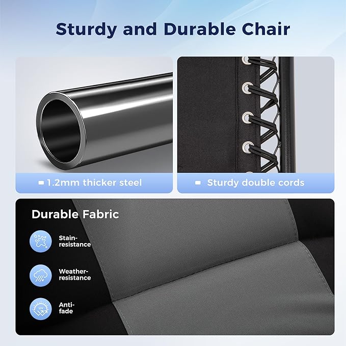 - 【No Assembly Required Antigravity Chair】: The zero gravity chair come fully assembled, the only thing you need to do is to get the folded chair out of the package and have a nice nap. The easy folding and compact structure is suitable for any outdoor occasions, such as poolside, patio, backyard, garden, beach or balcony.It will bring you a more comfortable experience to have a rest at the leisure time
