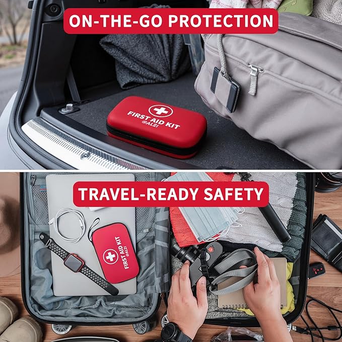 - COMPACT & PORTABLE: Lightweight and travel-friendly, this first aid kit measures just 8.15” x 5.31” x 2.36”, making it easy to carry for on-the-go emergencies. Perfect for backpacks, glove compartments, and camping gear, ensuring quick access during road trips, hikes, and outdoor adventures.