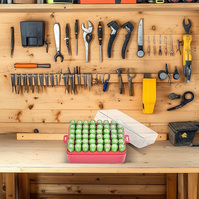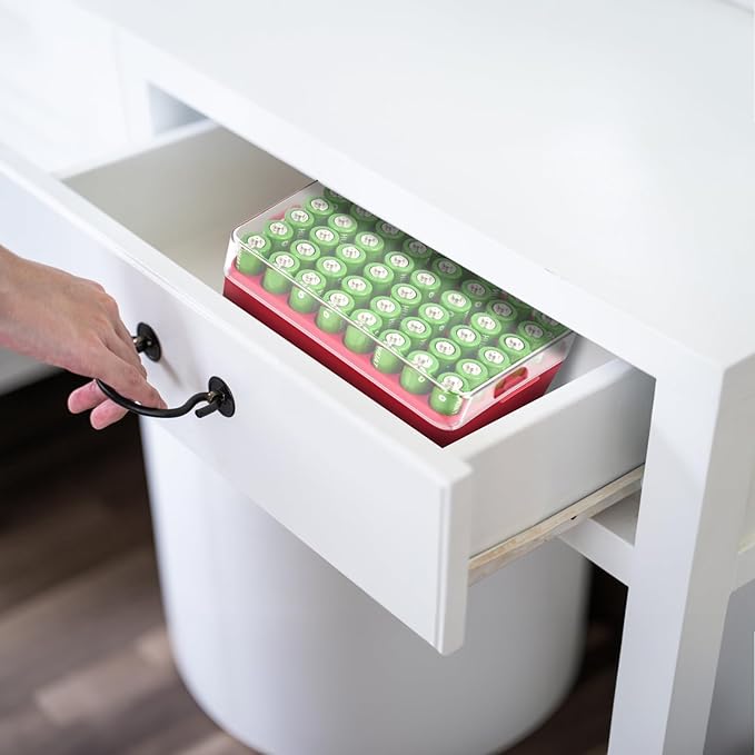 - Custom-tailored, Maximizing Space Utilization:Battery organizer is specifically designed for AA batteries, featuring 48 precisely fitted slots. Battery holder organizer fits for Amazon Basics/ for DURACELL/ for Energizer/ for powermax/ for Voniko brands batteries. Each battery slot is meticulously crafted to ensure that batteries fit snugly without wobbling or getting stuck. Transparent lid design allows you to easily see quantity of batteries inside. AA battery case size: 5.5*3.75*2.25 inches.
