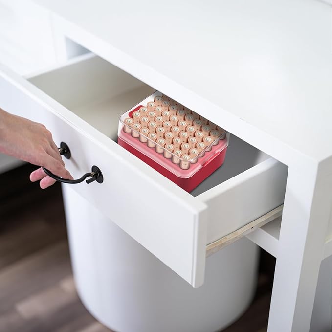 ALCYON Battery Organizer Storage Case, Battery Vault Box Container for 48pcs AAA Batteries, Plastic Clear Protective Battery Holder for Travelling/Home/Office (Red, Small)