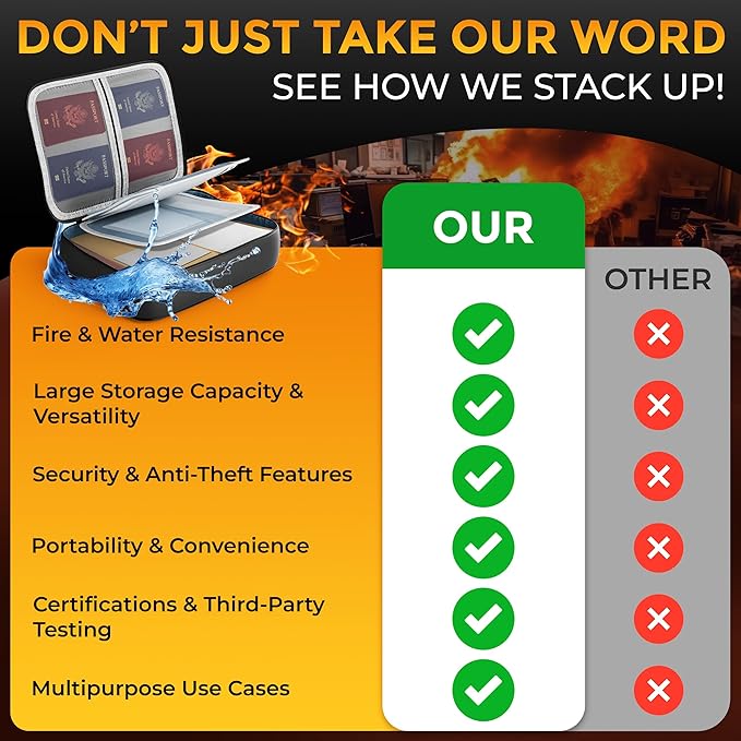 - ๐๐๐ผ๐ฐ๐๐บ๐ฒ๐ป๐ ๐๐ฎ๐ด ๐ฃ๐ผ๐ฟ๐๐ฎ๐ฏ๐น๐ฒ ๐ฃ๐ฟ๐ผ๐๐ฒ๐ฐ๐๐ถ๐ผ๐ป: wherever you go Keep your documents safe no matter where you are This fireproof document bag is designed for travel outdoor adventures and everyday security Lightweight and foldable it fits both letter and legal size files while offering superior protection against fire water and dust Whether you're heading on a trip camping or simply need extra security .