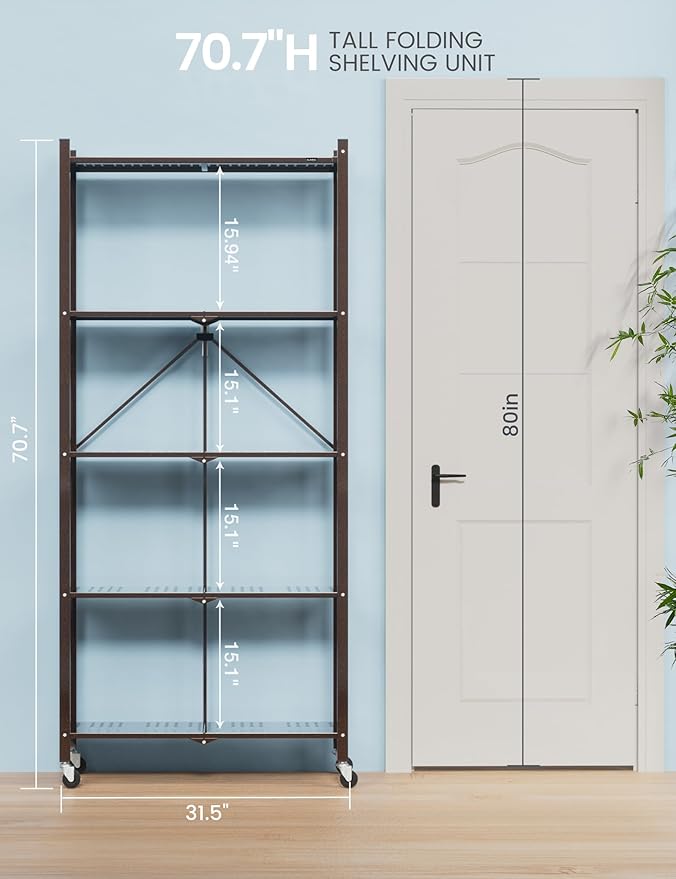 - [1-Min Tool-Free Assembly] No bolts, no tools, no frustration! Unfolds from 3.9-inch flat pack to 70.7" shelving in 60 seconds - 10x faster than traditional shelves. Perfect for last-minute garage cleanups, holiday guest prep, or emergency storm supplies organization.