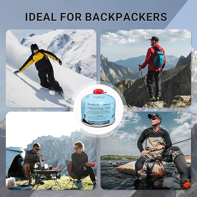 - 【Unsurpassed Versatility】 Isobutane fuel demonstrates its unsurpassed versatility.You can use it for cooking,backpacking and outdoor activities,consistent press can be guaranteed when in use.Enjoy your warm meals and drinks during your trips