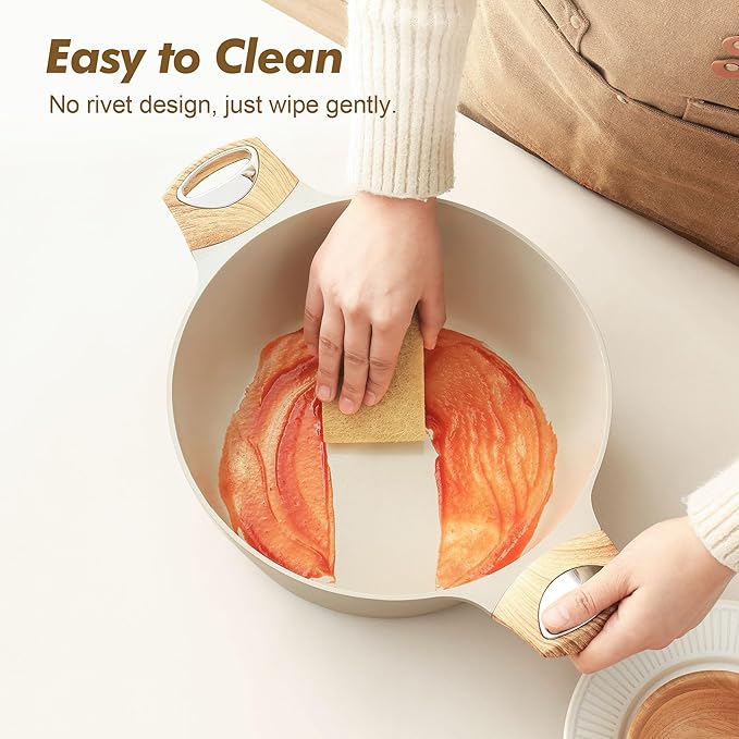 - Natural Nonstick - Ceramic nonstick material is healthier than Teflon and scratch-resistant with excellent food release. Only less oil is needed for cooking, for a healthy, low-fat diet.