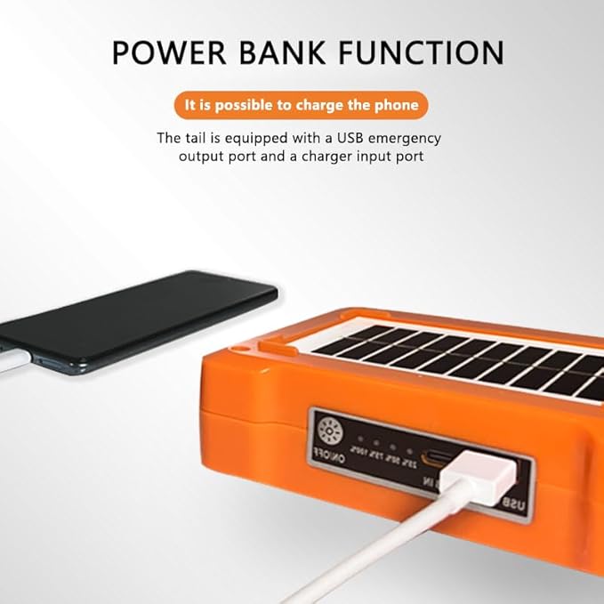 - 【Lampara Recargable Para Apagones】Support USB power cord and solar charging. USB charging mode is recommended for daily charging, and solar charging mode is suitable for outdoor emergency charging. In addition, this emergency work light can also be used as a mobile power supply to charge other electronic devices.