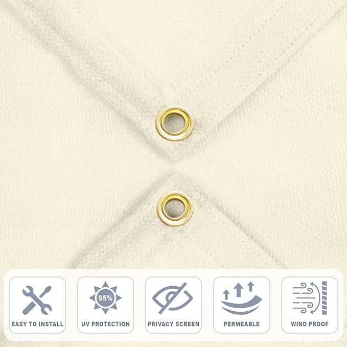- ?�Easy to Install?‘Each shade cloth for patio is designed with heavy-duty copper grommets at 2 ft intervals, with included zip ties, ropes, and offers flexible mounting options. Please understand that due to the elasticity of the material, our shade cloth has a tolerance of ±2 inch.
