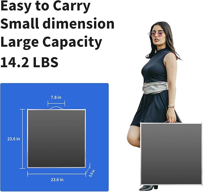 - Easy to Carry and Install - This 6 feet folding table is very convenient to open and storage. When it is folded the package size is 24 inches x 24 inches x 4 inches with 16.8 lbs Weight. The aluminum folding table can be easily carried and stored indoors or outdoors