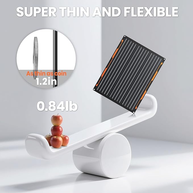 - 24% High-Efficiency Monocrystalline Core - Premium monocrystalline solar cells achieve 22%-24% conversion efficiency (STC 1000W/m², 25°C) - 20% faster charging than polycrystalline panels. Weighs only 380g for portable installation.