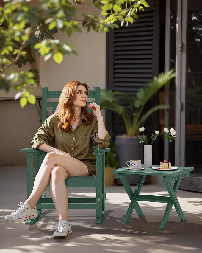 SERWALL Portable Folding Outdoor Side Table - Adirondack Style, HDPE Material, No Assembly Required, Outside End Table for Patio, Porch, Deck, Pool, Green
