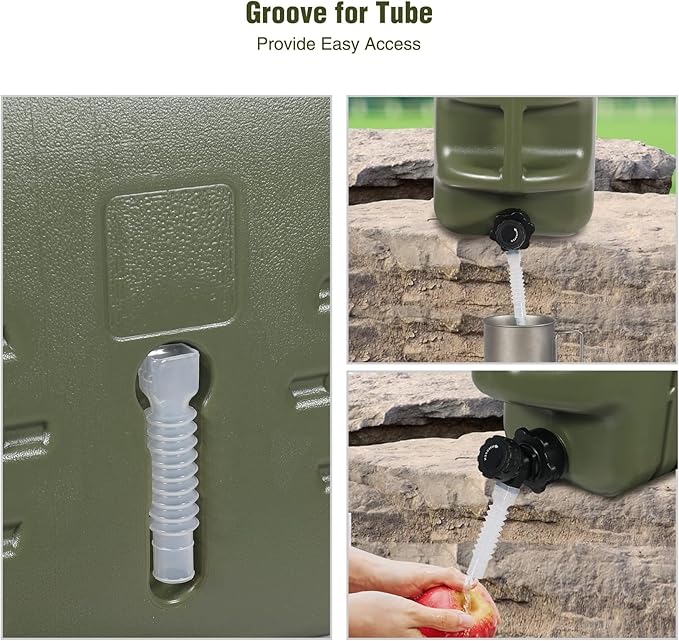 - Special Design: The water storage has groove on the side to store the tube for easy access. You can use with the faucet only or with the tube. The kit bag includes a sealing cap, a water pipe, a cleaning brush.