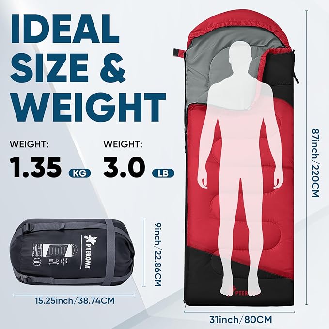 PTEROMY Sleeping Bags for Adults, Lightweight Water Resistant Backpacking Camping Sleeping Bag for Warm Cold Weather, Camping Essentials for Hiking Outdoor Travel