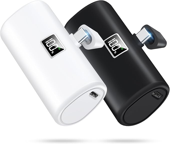 Portable Charger, [2-Pack] 6000mAh Power Bank for iPhone 17 16 15 Pro Max, 20W USB-C Fast Charge, LCD Display, Travel Essentials Small Battery Pack for Android Phones, Birthday Gifts for Women Man