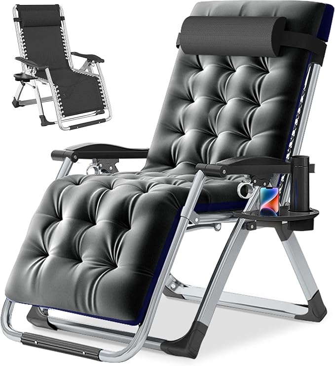 NAIZEA Padded Zero Gravity Chair, Folding Outdoor Lounge Chairs, Adjustable Reclining Camping Chairs with Cup Holder, Ergonomic Patio Lawn Chair for Balcony Beach Deck Yard