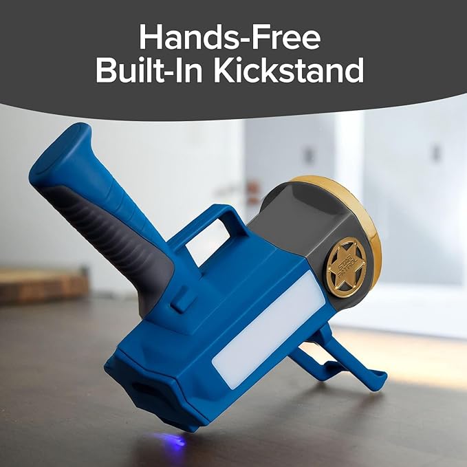Mega-Bright Rechargeable Spotlight, AS-SEEN-ON-TV, Tactical & Emergency Flashlight, 10 Modes, Turbo Boost Up to 100%, Built-in Kickstand & Phone Charger, for Camping, Emergencies, Walking