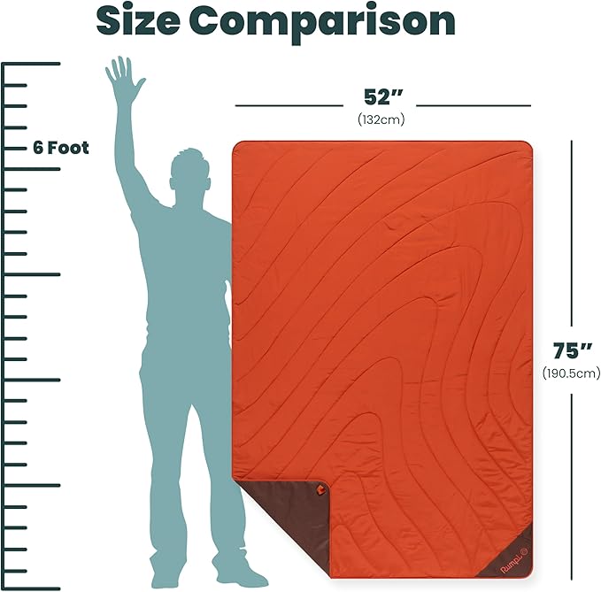 - Measures 52 x 75 inches (132 x 190.5 cm) when flat; packs down to 15 x 8 x 8 inches (38 x 20 x 20 cm); weighs 3.85 lbs (1.75 kg); made from 100% recycled materials; Climate Label Certified and B Corp Certified; includes StuffleBag carrying case