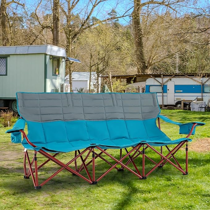 - Oversized Padded Seat: With 62" x 19" seat dimension, this camping chair seats up to 3. The chair also features a comfortable padded seat consisting of premium 600*300D Oxford cloth and soft sponge, ensuring a cozy yet long-lasting seating experience.