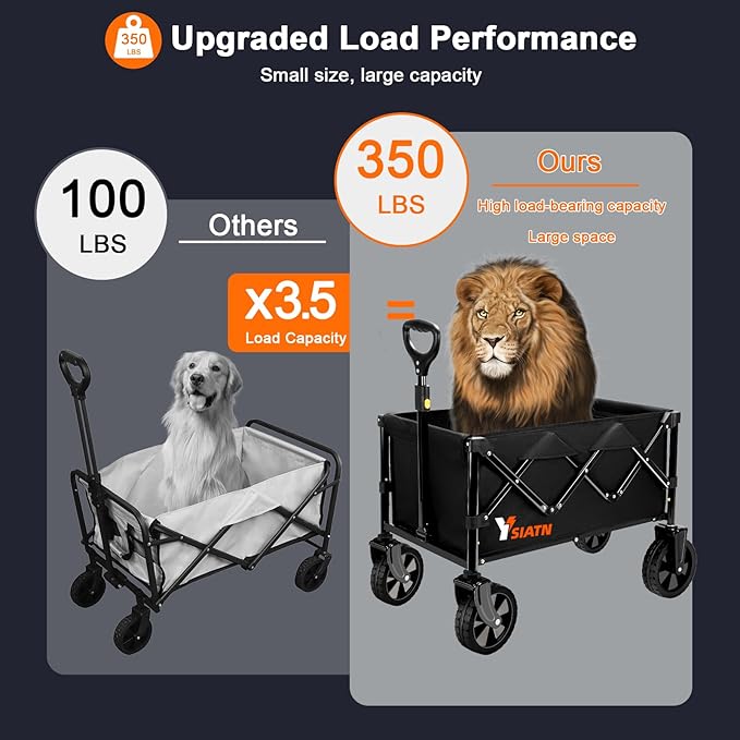Collapsible Wagon with All Terrain Wheels, Large Grocery Cart On Wheels, 220LBS Utility Folding Wagon for Camping Shopping Beach Sports Fishing, Black