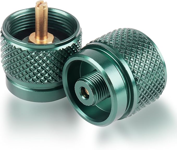 Camping Stove Adapter 1 Lb Propane Small Tank Input EN417 Lindal Valve Output Outdoor Cylinder LPG Canister Adapter for Outdoor Backpack Hiking 2PCS