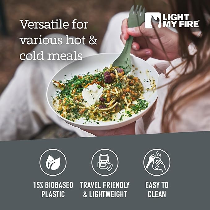 Light My Fire Spork Original 4-Pack 3-in-1 Camping Spoon Fork Knife Combo Reusable Travel & Camping Utensils Lunch Spork Outdoor Backpacking Hiking Picnic Utensil BPA Free, Meadow