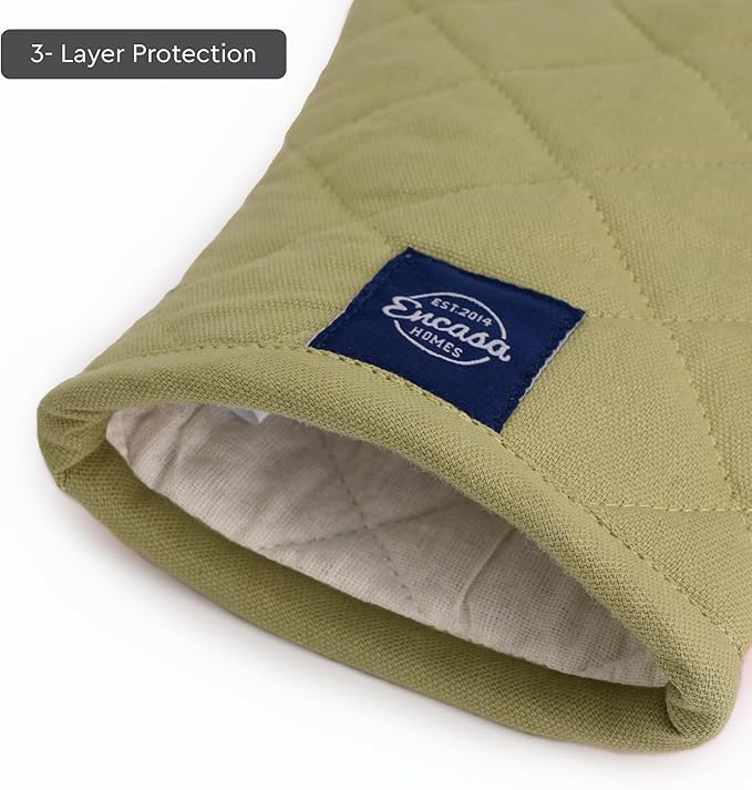 Encasa XO Heat Resistant Cotton Oven Gloves Mitts (2 Pc Set) - Quilted & Safe 12x6.6 in - for Kitchen, Cooking & Baking, Grilling, Handling Hot Pots & Pans - Sage & Coral
