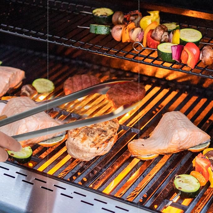 - 【Extra-long handles to avoid heat】With a high-quality stainless steel core and an extra-long, comfortable wood handle, these grilling tongs provide the perfect length for safe and easy grilling. Never worry about feeling the heat again