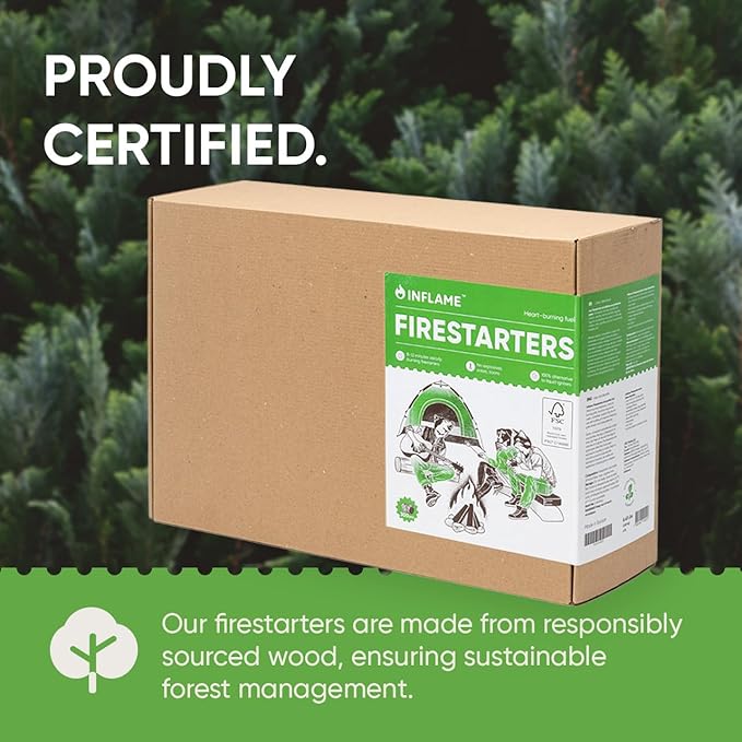 Inflame Fire Starters 300 pcs Fire Starters for Campfires, Grill, BBQ, Fireplace, Woodstove - Charcoal Starter - Waterproof, Weather-Resistant - Natural Wood Fireplace Starters