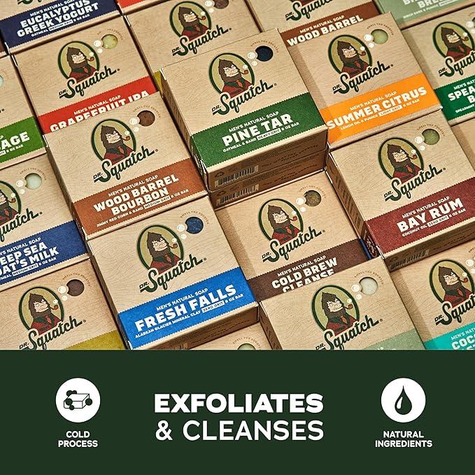 - RAISE THE BAR - Upgrade your shower with our sudstastic soaps featuring Dr. Squatch’s favorite scents: Birchwood Breeze, Rainforest Rapids & Coastal Mist