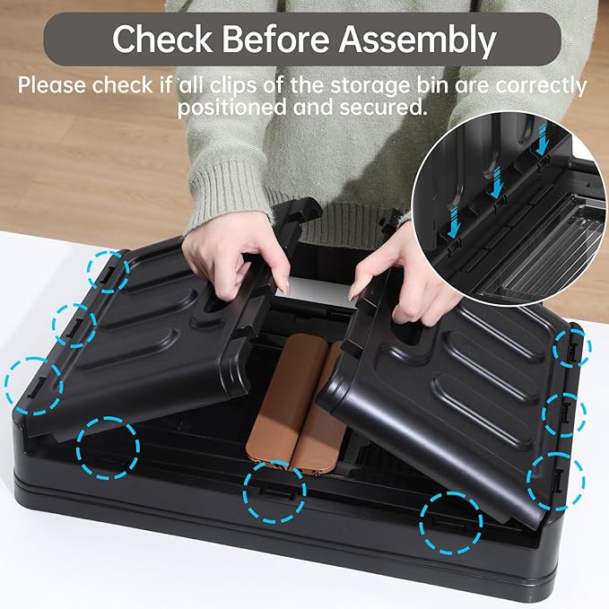 - Foldable Storage Bin with 4 Lids: HAIXIN collapsible and install-free storage bin, enables to fold flat, only takes 10 seconds to snap pieces together, no instructions or tools needed, easy-assemble foladable bin. When not needed, the storage box can be easily folded and stored under the bed or couch or in any corner, taking up little space.