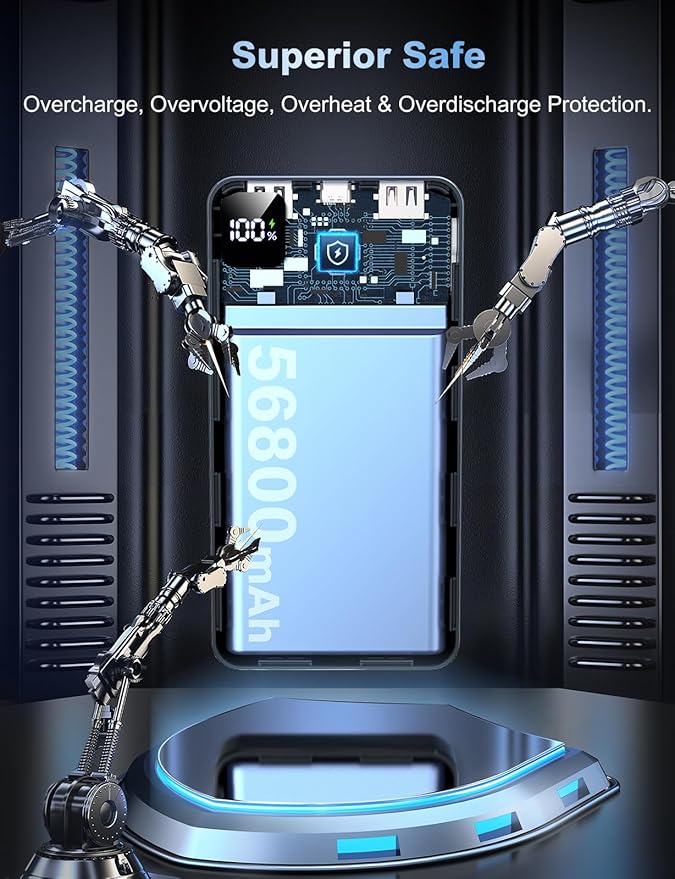 - Massive 56800mAh Capacity – Power That Goes the Distance: Designed for power-hungry users, this 56800mAh portable charger delivers days of reliable energy for iPhone 16/15/14/13 Pro Max/Pro/Plus or Sumsang, Google Pixel. Charge your phone up to 11 times or your tablet multiple times—ideal for long trips, camping, or business travel. Say goodbye to low battery anxiety and enjoy the freedom of staying connected, wherever your journey takes you.