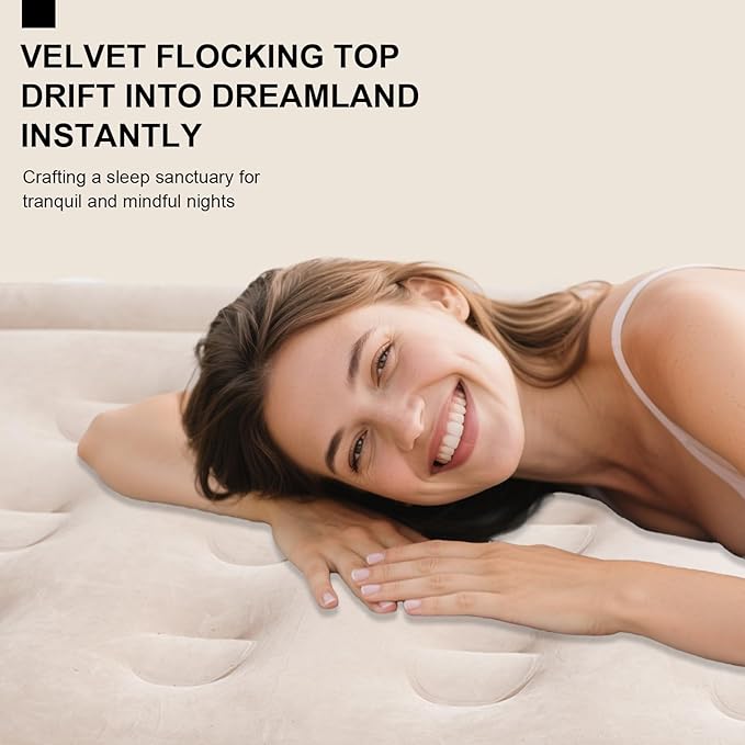 - 16" Elevated Twin Comfort:Flocked PVC surface mimics plush fabric feel (45"x75"x16"), while raised design prevents ground chill. Higher than standard air mattresses for sofa-like seating ease.