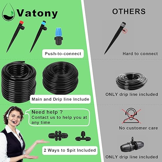 - ๐ง Effortless Installation โ No Digging or Plumbing Required: Setting up your irrigation system has never been easier! With detailed installation instructions and a step-by-step video, simply connect the fittings, plug in the tubing, and start watering your plants instantly. Want fully automated watering? Just add an automatic timer (sold separately) and enjoy a hands-free irrigation experienceโeven while on vacation!