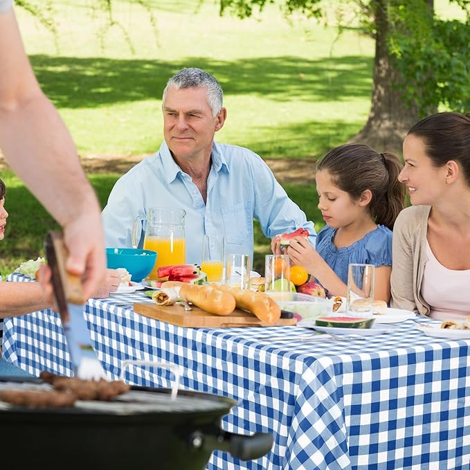 - Classic and Elegant Design: the blue checkered tablecloth showcases a timeless color scheme that complements your home decor; its classic pattern seamlessly integrates with your kitchen or dining area, enhancing visual appeal; the tablecloth’s aesthetic versatility makes it a charming addition to any event