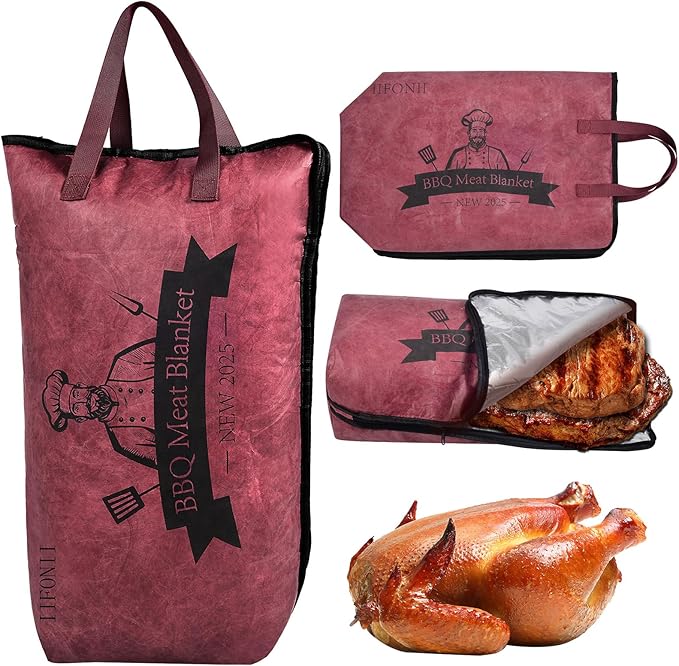- 【Extra Large Capacity】Our meat blanket for resting has a spacious capacity, accommodating large cuts of meat such as brisket, pork shoulder, and turkey. The BBQ brisket blanket features a wide-mouth design that easily fits oversized meat, making it more convenient to place in or take out barbecue items without being squished. It's perfect for carrying food for multiple people during picnics, camping, beach days, tailgate parties, and gatherings, making it ideal for large events.