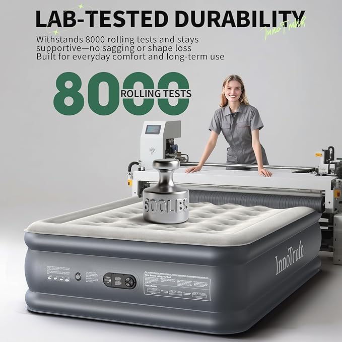 - ๐๐ซ๐๐ฆ๐ข๐ฎ๐ฆ-๐๐ซ๐๐๐ ๐๐๐ญ๐๐ซ๐ข๐๐ฅ๐ฌ: Made with 10% thicker, upgraded PVC, the InnoTruth airbed provides enhanced durability and reliable support. Its reinforced surface resists daily wear and tear, while the quiet, non-slip base keeps the mattress securely in place throughout the night